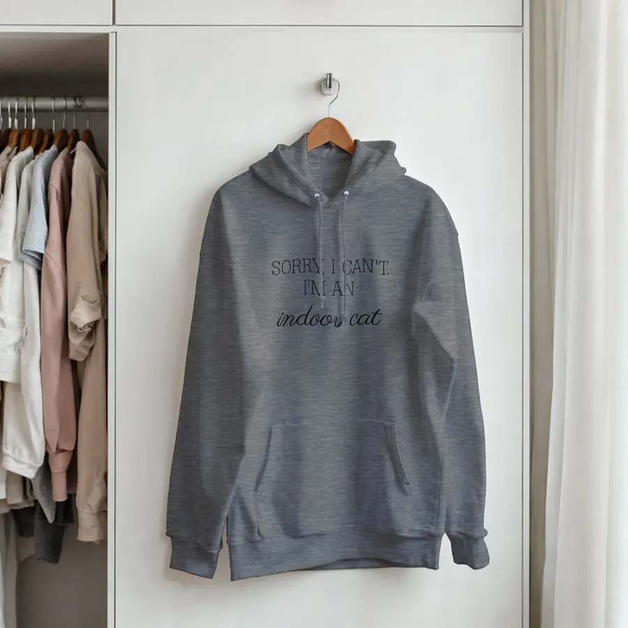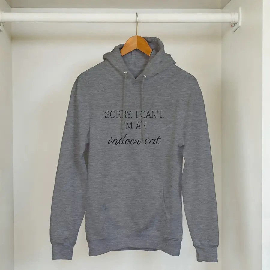 Huvtröja med kattigt motiv: Sorry I can't. I'm an indoor Cat.