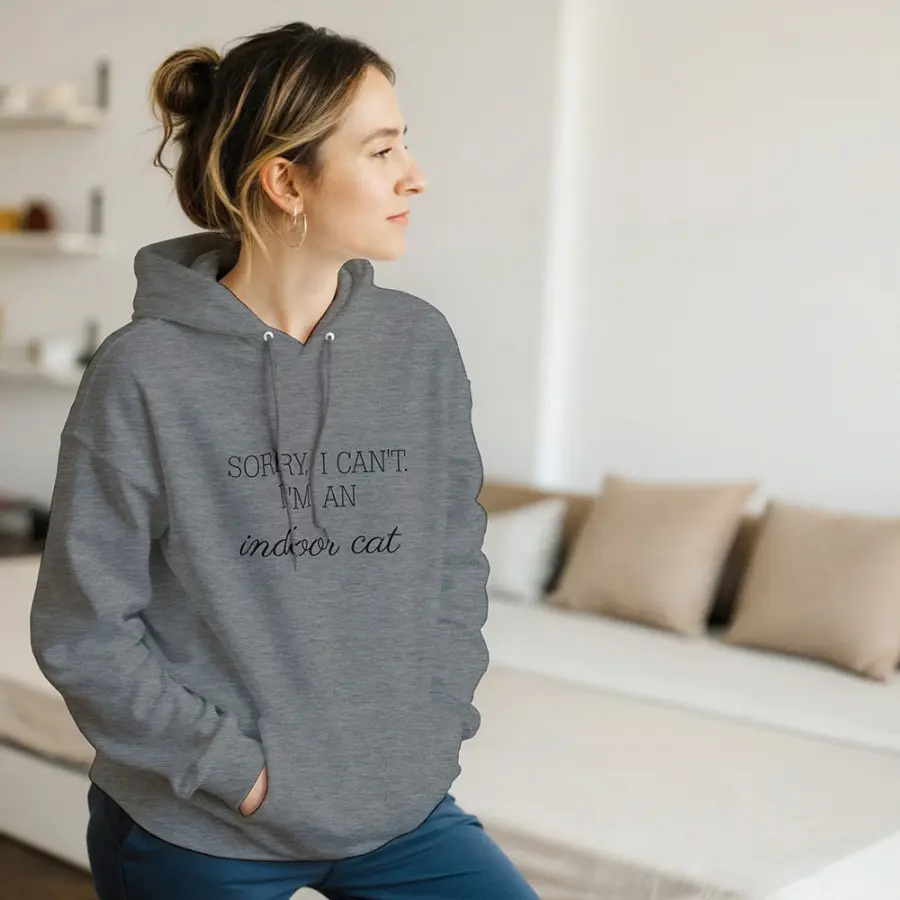 Huvtröja med kattigt motiv: Sorry I can't. I'm an indoor Cat.