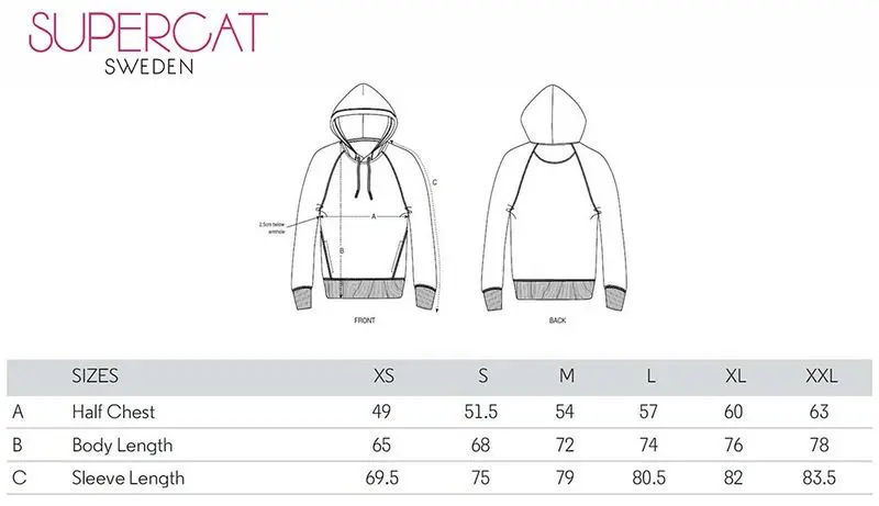 Superhärlig modell på huvtröjan med bra längd på tröjan och även på ärmarna, så den blir inte för kort om man själv är lite lång. Mät gärna upp din storlek med hjälp av måtten på produktbilden, så att vi kan minimera antalet returer pga fel storlek.