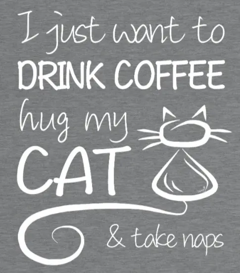 Nu är en av våra favoriter i lager igen; t-shirten med trycket "I just want to drink coffee, hug my cat & take naps". En perfekt unna-mig-grej till dig själv eller en present till någon av dina kattvänner! Den här klassiskt grå T-shirten har tryck på framsidan och är helt ren på baksidan.