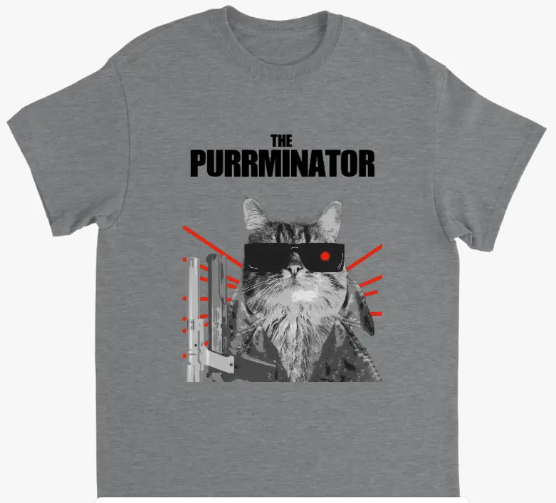 Supercat T shirt med tryck Purrminator grå - 3XL
