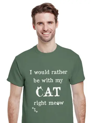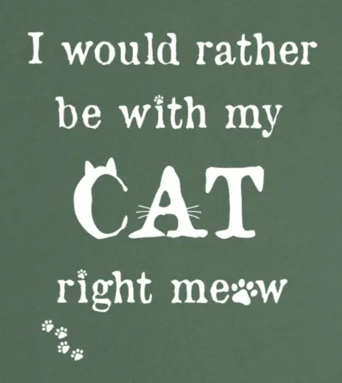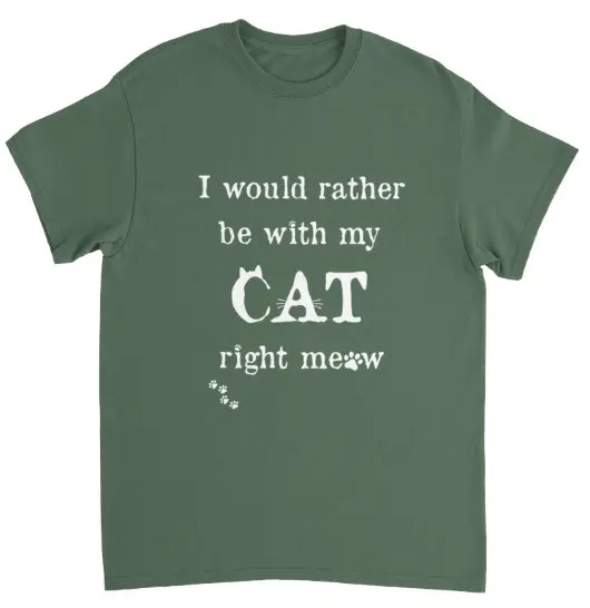 "I would rather be with my CAT right meow" Visst känner vi alla igen oss? Den här snygga t-shirten har tryck på framsidan och är helgrön på baksidan, och är perfekt för vilken kattälskare som helst. Passar lika bra till jeans som till sommarkjolen.