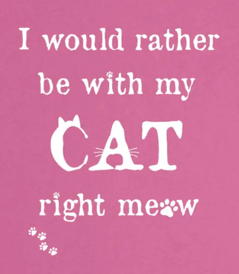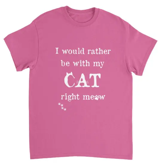 T-shirt med texten: "I would rather be with my CAT right meow" Känner du igen dig? Då passar den här t-shirten dig! Den har tryck på framsidan och är helrosa på baksidan, och är perfekt för en kattälskare som dig. Sätt på dig den här tröjan innan du åker hemifrån, så vet din katt att du tänker på den hela dagen, var du än är.