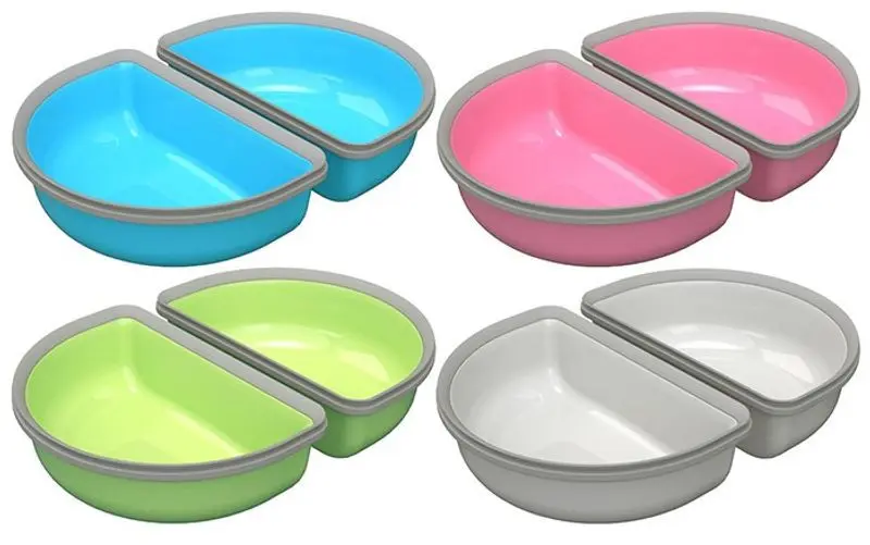 Detta är en delad, en "halvskål", perfekt för dig som både vill servera torrfoder och blötfoder till din katt. Silikonkanten bildar en tätning mot Surefeed-locket i foderautomaten.