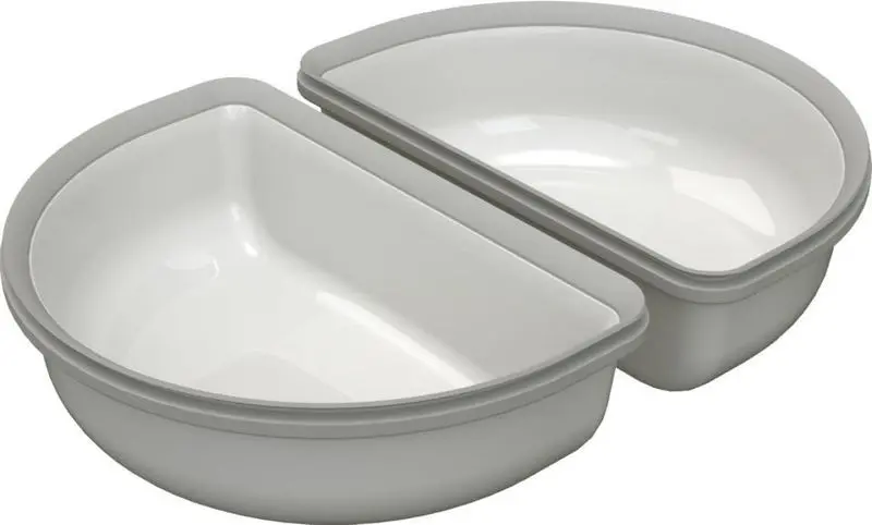 Detta är en delad, en "halvskål", perfekt för dig som både vill servera torrfoder och blötfoder till din katt. Silikonkanten bildar en tätning mot Surefeed-locket i foderautomaten.