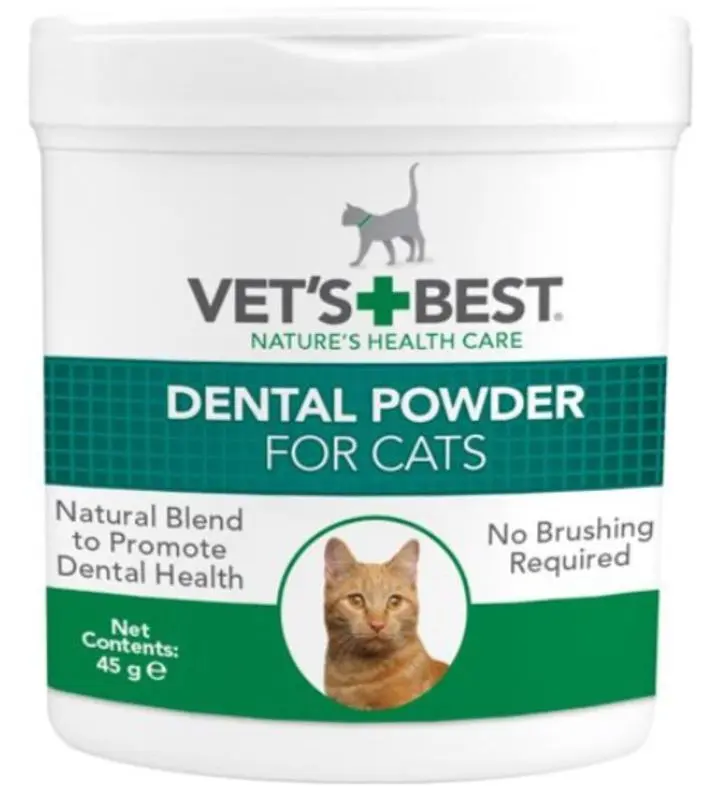 Vet's Best tandvårdspulver är ett pulver som tillverkas bl a av sjögräs och alger - som främjar en god tandhälsa. Detta pulver kan strös över kattens torrfoder, våtfoder eller blandas i creme-kattgodis. Har du en katt som vägrar tandborstning kan ett tandvårdspulver vara en hjälp på vägen mot en bättre tandhälsa.