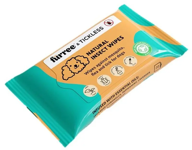 Håll insekterna i schack med NATURAL INSECT WIPES, en miljö- och husdjursvänlig lösning. Furrees & Tickless biologiskt nedbrytbara våtservetter är infunderade med en blandning av eteriska oljor inklusive javanesisk citronella, pepparmynta, lavendel och indisk citrongräs. Denna kombination erbjuder ett säkert, effektivt och behagligt doftande sätt att stöta bort fästingar, loppor och myggor naturligt.