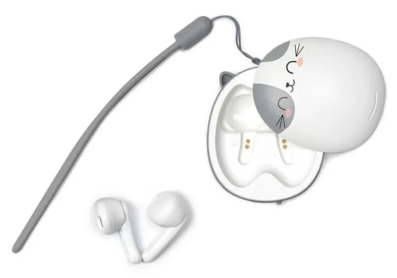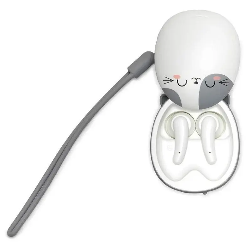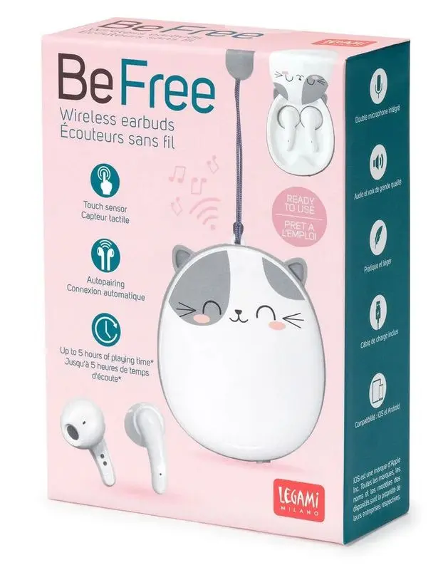 Trådlösa hörlurar från Meow-serien - "Be Free" från varumärket Legami. Dessa låter dig lyssna på upp till 5 timmars speltid av musik eller poddar, och hjälpa dig att ta samtal på din mobil - med den inbyggda dubbla mikrofonen..och då har vi inte ens nämnt hur söta de är i sitt katt-fodral?