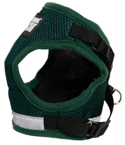 Den här snygga västen i en limited edition färg är smaragdgrön med svarta remmar och svart koppel.