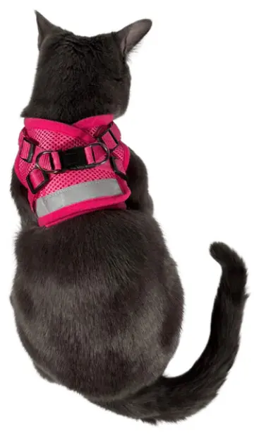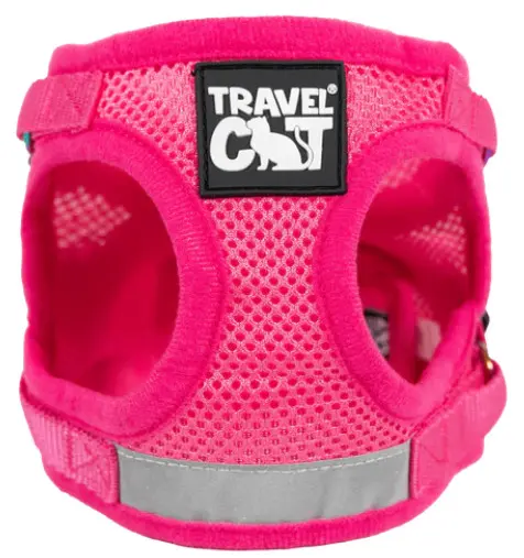 Mjuk och skön västsele i step-in modell. Härligt rosa, tillverkad av mjukt mesh material som andas och är bekvämt för katten att ha på sig. Selen är enkel att ta på och av, och spännes i ryggen med både kardborreband och spänne. Alla öppningar i västen är kantade med ett mjukt material för att undvika hårda kanter.