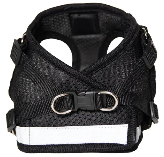 Mjuk och skön västsele i step-in modell. Stilren svart, tillverkad av mjukt mesh material som andas och är bekvämt för katten att ha på sig. Selen är enkel att ta på och av, och spännes i ryggen med både kardborreband och spänne. Alla öppningar i västen är kantade med ett mjukt material för att undvika hårda kanter.