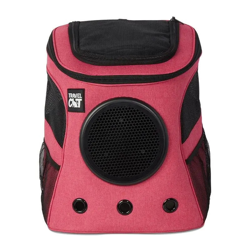 Den här snygga rosa ryggsäcken "The Fat Cat backpack" från Travel Cat, är en stabil ryggsäck för katt eller liten hund som vill följa med ut på äventyr. Ryggsäcken är rymlig, den har bra ventilation med lufthål i nederkanten samt mesh på sidorna och i locket. På framsidan finns möjligheten att välja mellan ett fönster i mesh, eller den populära "bubblan" - som katten lättare kan se ut igenom!