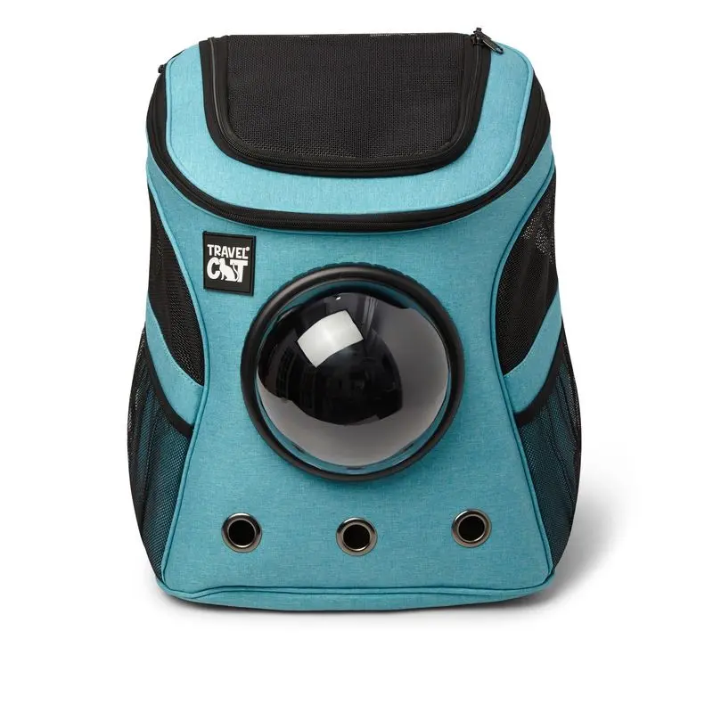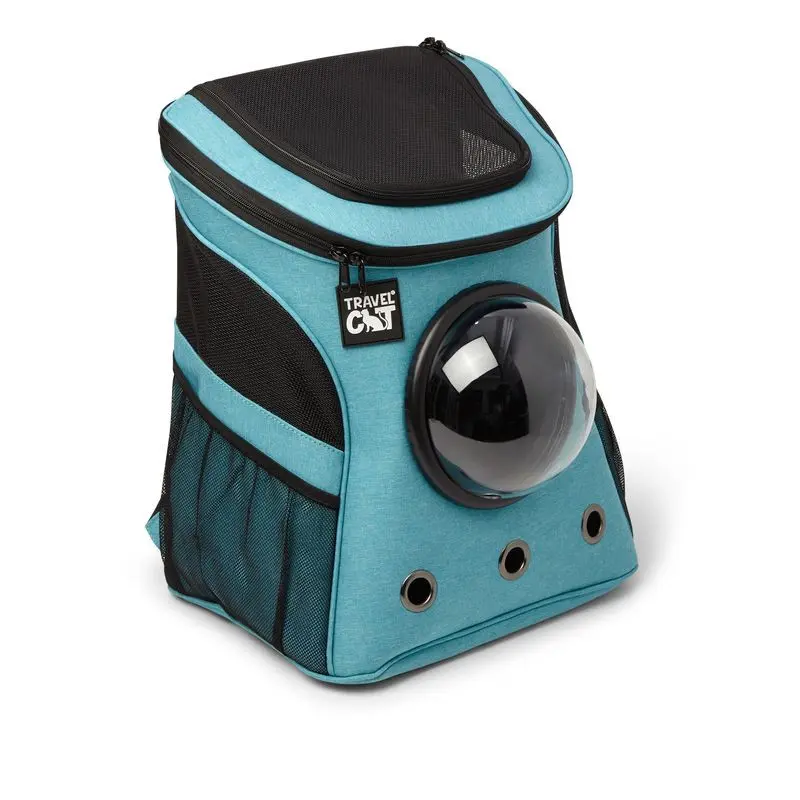 Den här ryggsäcken "The Fat Cat backpack" från Travel Cat, är en stabil ryggsäck för katt eller liten hund som vill följa med ut på äventyr. Här i en fräsch turkos färg!