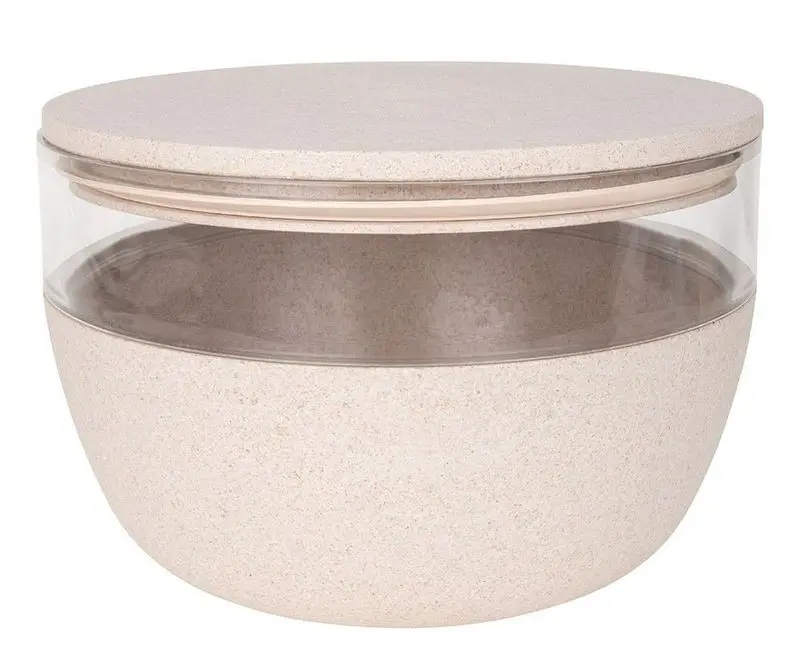 Denna förvaringsbehållare av bambu har en halkfri botten av silikon som gör att den står stadigt. Den går att köra i diskmaskinen eller såklart handdiska.