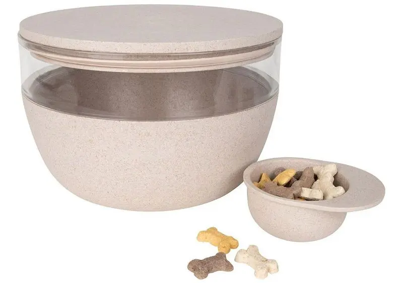 Foderbehållare för torrfoder eller kattgodis, en snygg Treat Jar tillverkad i Bambu. Denna foderbehållare är snygg nog att ha framme vid kattens matplats, den matchar även perfekt med matskålarna, slow feedern och matskålsunderlägget från samma märke.