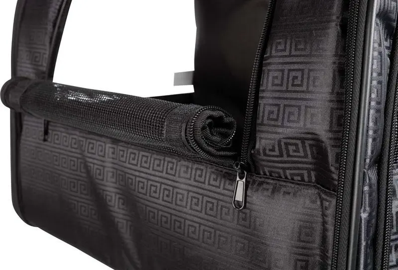 Stadig och funktionell dragväska tillverkad i kvalitetsnylon med ett teleskophandtag. Riktigt snygg svart färg och med en mysig fleecedyna i botten. Denna väska har en bred nederdel vilket gör att katten kan åka stadigt och säkert.
