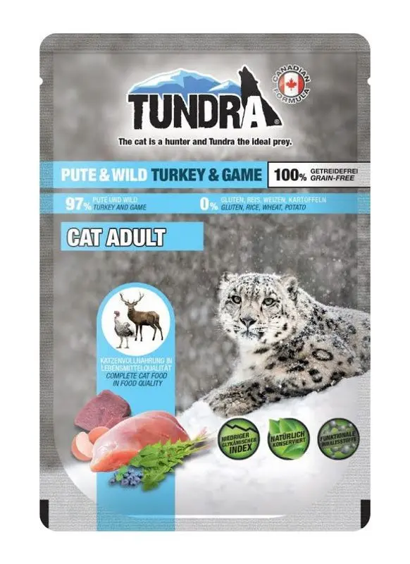 Tundra kattmat har 62-70% kött + organinnehåll, kattmaten är spannmålsfri och har fullständigt deklarerade ingredienser. Dess låga glykemiska index (GI) har utvecklats med kattens näringsmässiga fysiologi och biokemi i åtanke.
