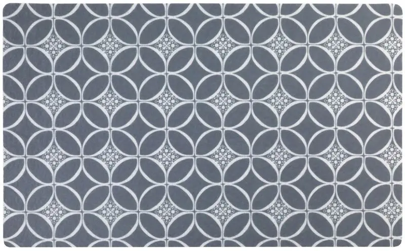 Ett absorberande underlägg från märket Drymate med grå-blå färgskala och fint mönster. Underlägget passar bra till matskålar och speciellt bra är det att ha under vattenskålar och vattenfontäner.