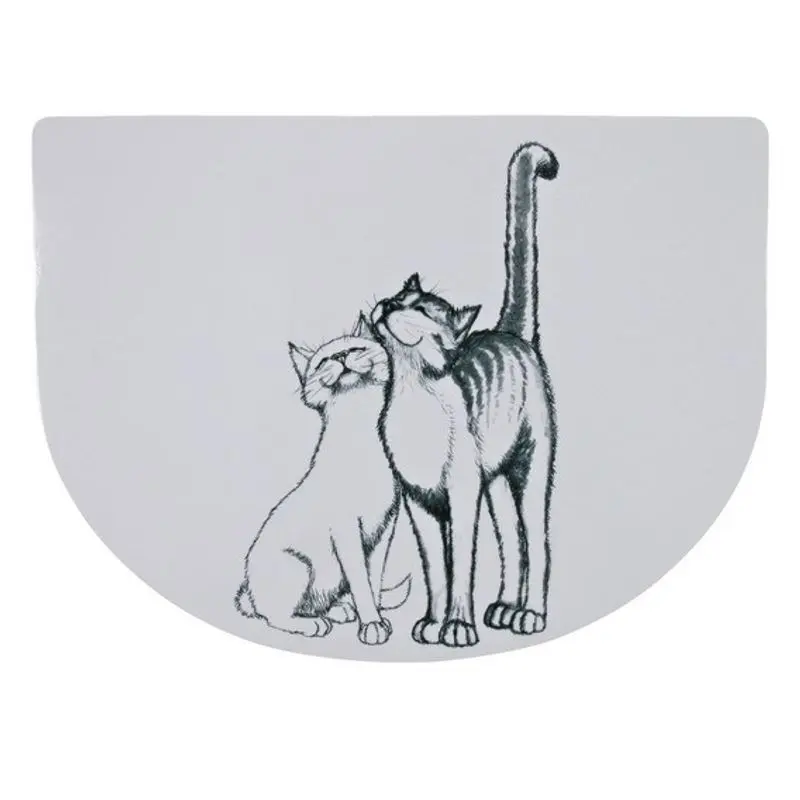 Fint underlägg till din kattmatskål eller vattenskål, halvmåneformat med vit bakgrund och fint motiv av två katter.