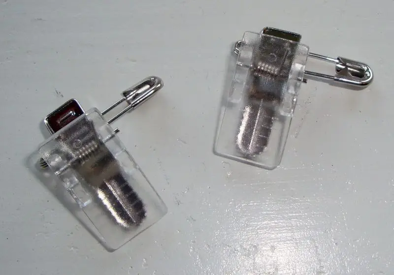 Ett liten säkerhetsnål med klämma som används för att sätta fast kattens nummerlapp i dina kläder när man ska gå upp med katten till domaren.