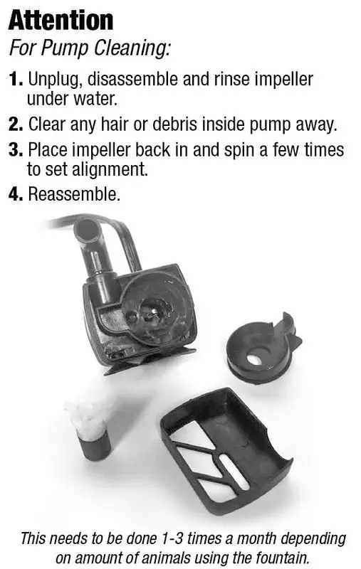 Använd fontänen tillsammans med aktiva kolfilter som håller vattnet rent, fräscht och smakligt för din katt. Ett kolfilter medföljer. Byt filter varannan till var fjärde vecka och rengör pumpen ordentligt en gång i månaden.