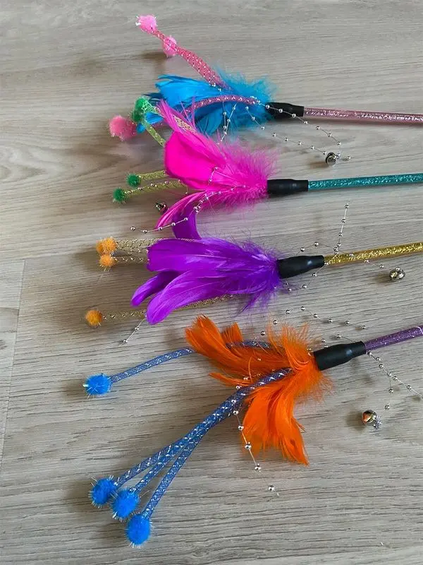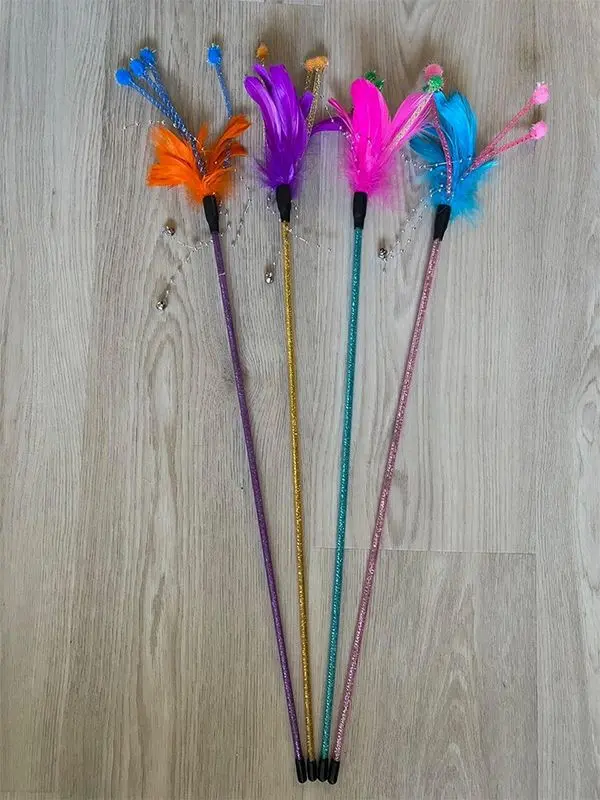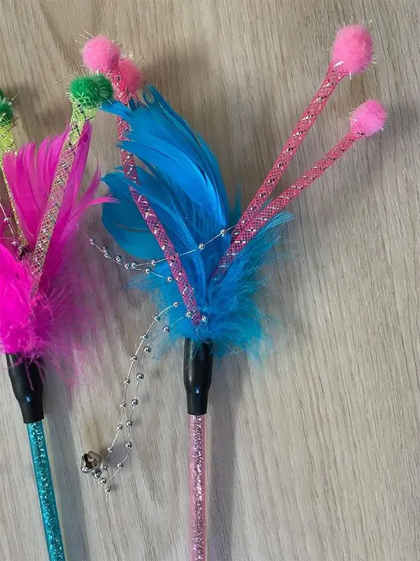 Fin fjädervippa med en "tofs" av flera olika material och färger, vilket blir lockande för din katt att leka med. Vippan har även ett fint dekorativt glittrigt skaft. Färgglada fjädrar som lockar din katt till lek när de svängs genom luften eller dras på golvet.