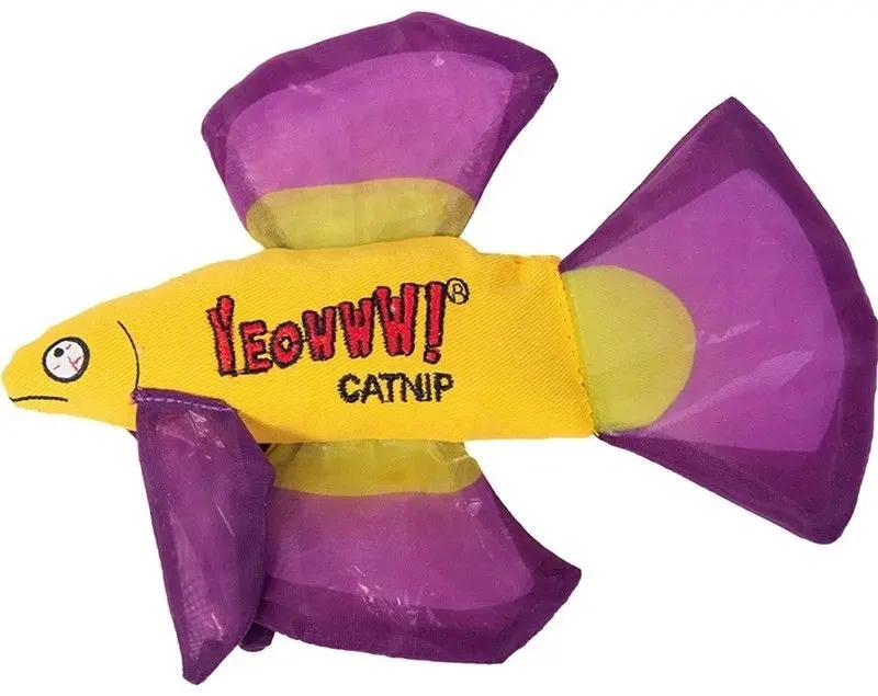 Yeowww Fancy Finned Fisk är ca 6,5 cm från fisknos till stjärnfena, den är riktig drömcatch med prassliga fenor som lockar till lek och tålig bomullstwill. Den är såklart fylld med Yeowws egen premium, ekologiska, starka kattmyntablandning. Blandningen består av både blad och blommor – inget fyllmedel som stör kattmyntans styrka