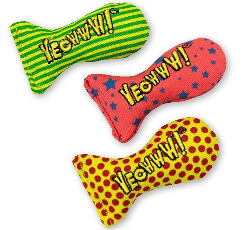 Yeowww är kända för sina snygga och tåliga leksaker stoppade med den finaste kattmyntan! Leksakerna är handgjorda och tillverkas i USA med ekologiskt odlad kattmynta.